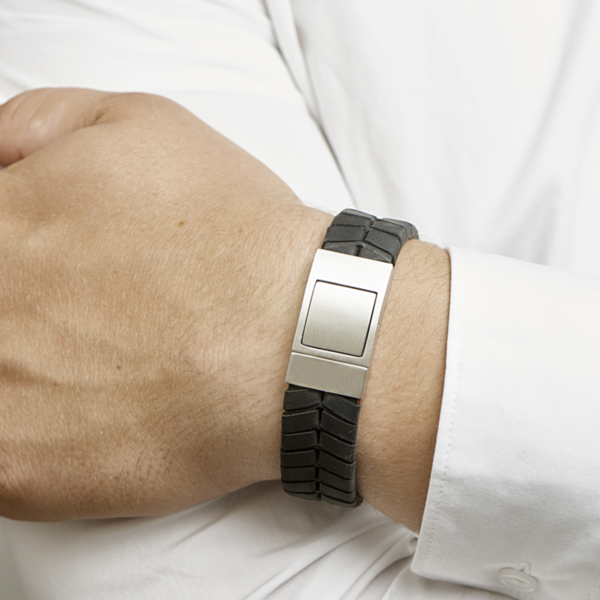 Edelstaal en leren heren armband met een lengte van 21cm en 18mm breed in de kleur zwart.
