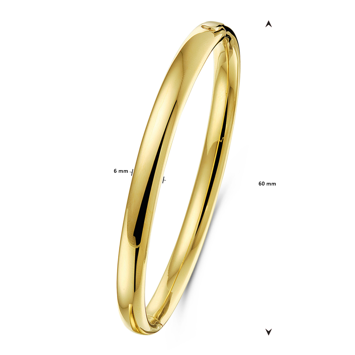 bangle scharnier ovale buis 6 x 60 mm 14K geelgoud