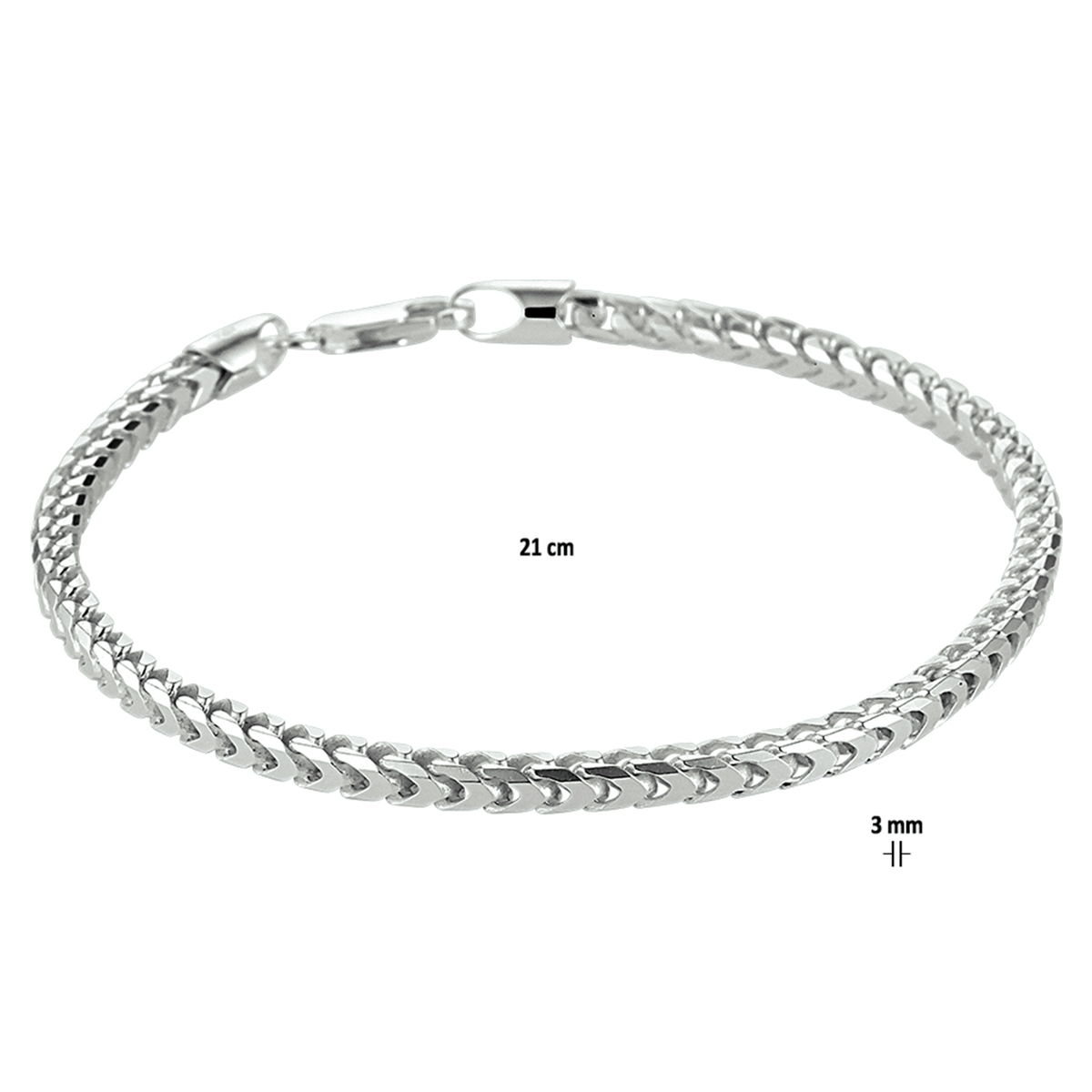 Zilveren lengte artikel met een gourmette schakel. Uitgevoerd met een karabijn sluiting. De schakelbreedte is 3.0mm.