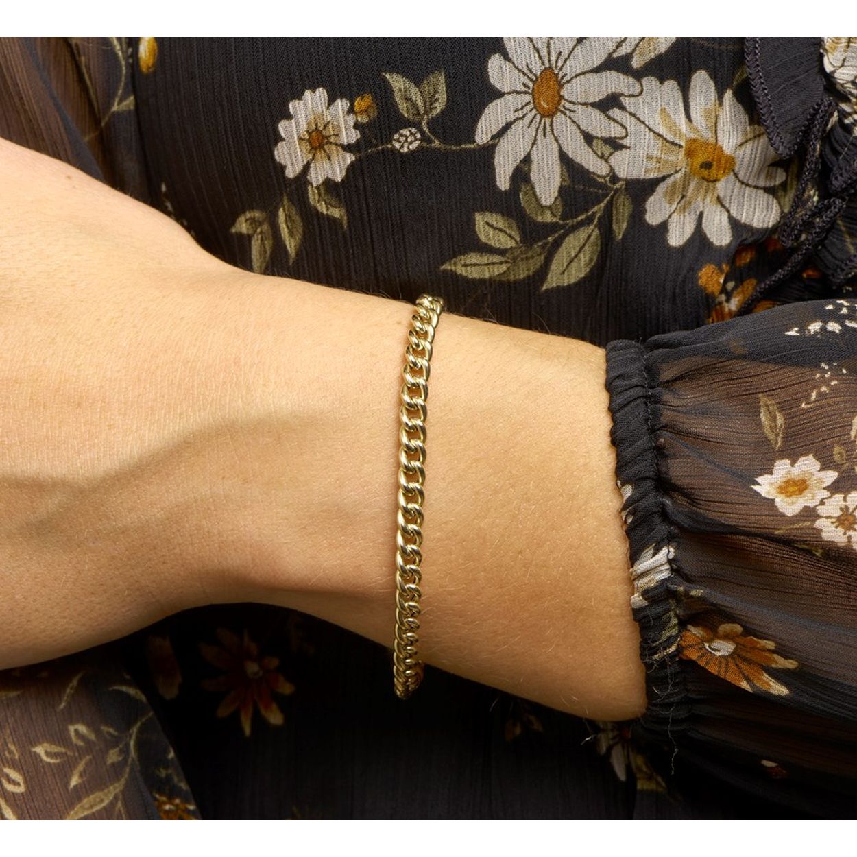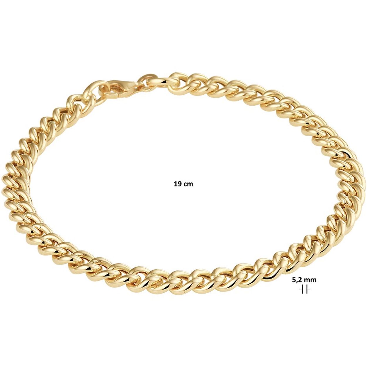 14k Geelgouden armband met een schakelbreedte van 5.2mm en een stevige karabijn sluiting. De armband heeft een draaglengte van 19 cm.