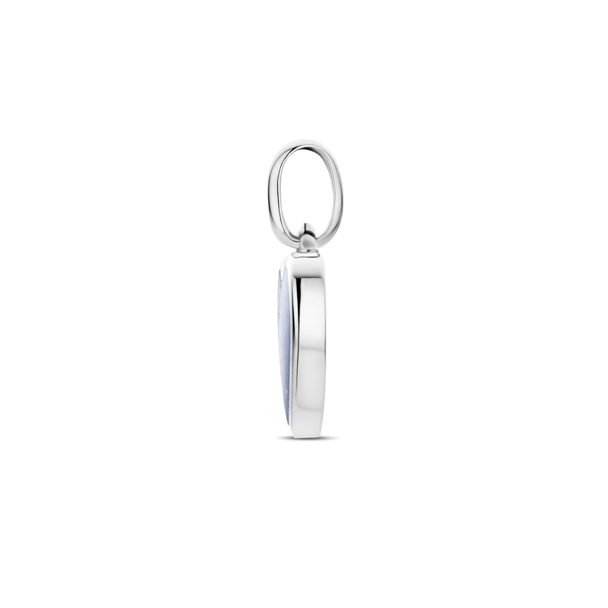 Gerhodineerd 925 zilveren hanger uitgevoerd in de vorm van een hartje met lapis. De hanger heeft een afmeting van 18.5x11.5mm.