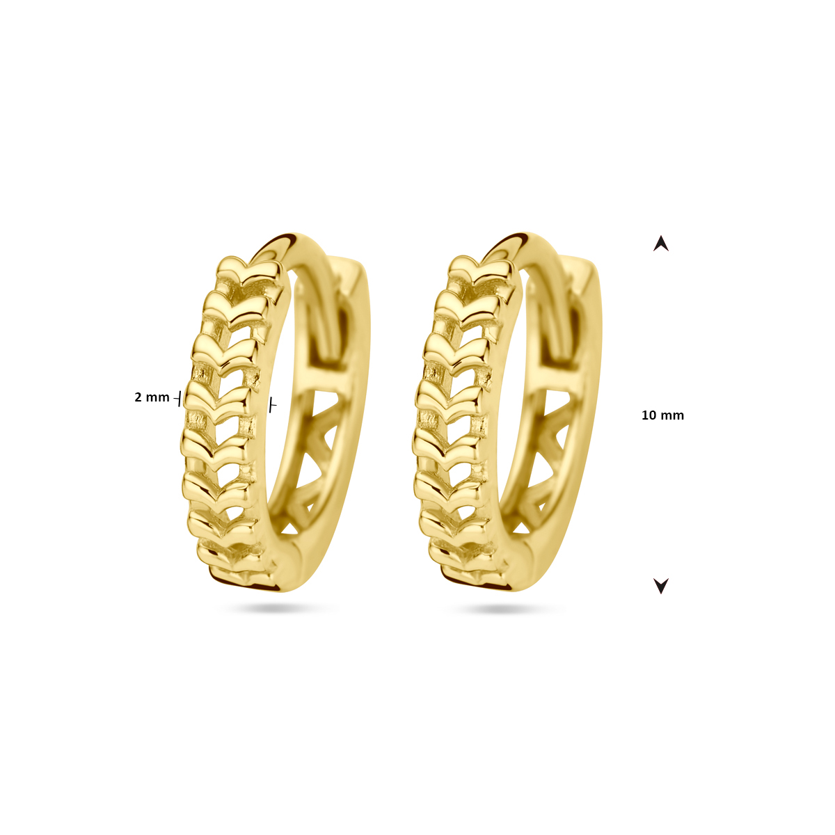 14k Geelgouden klapoorringen met een diameter van 10mm.
