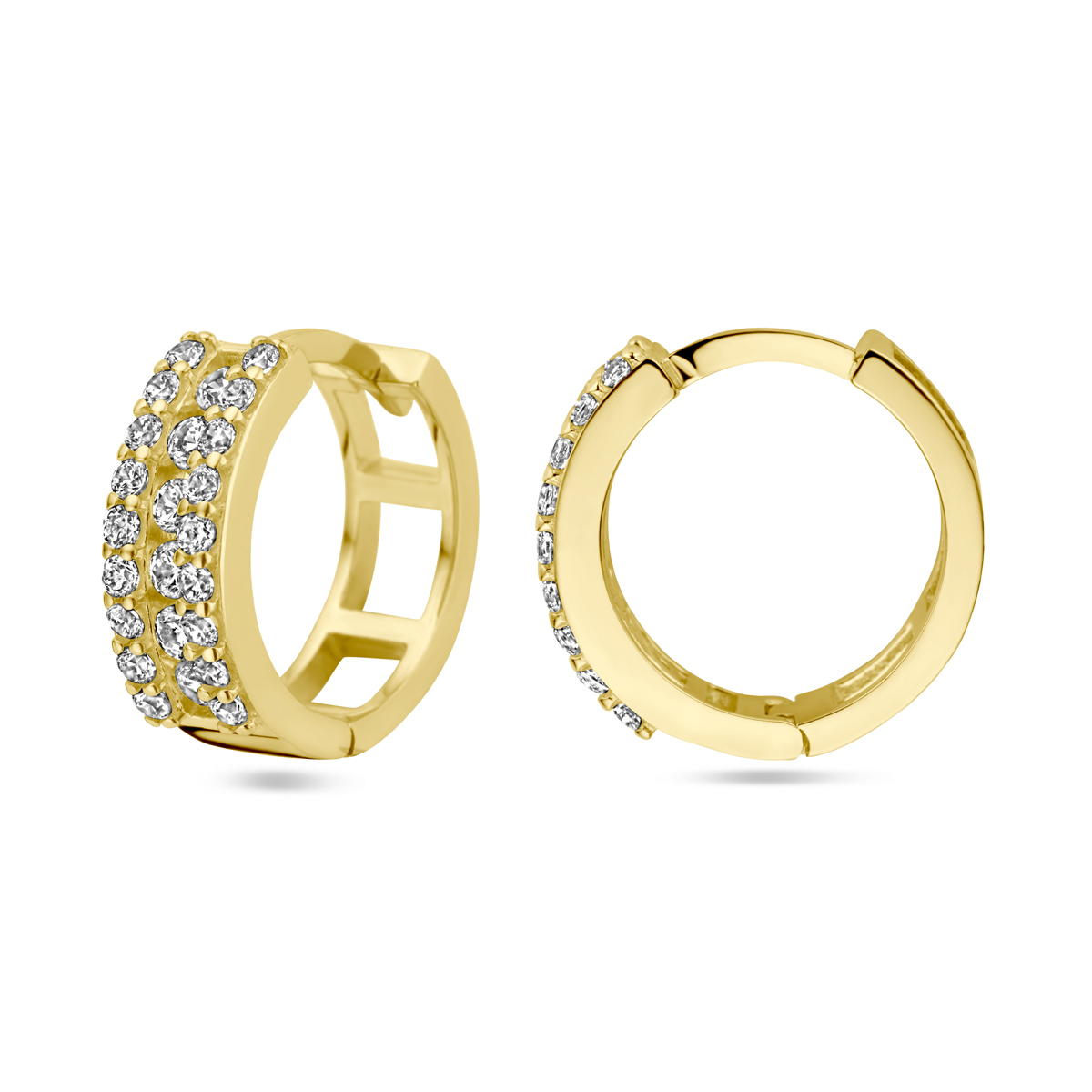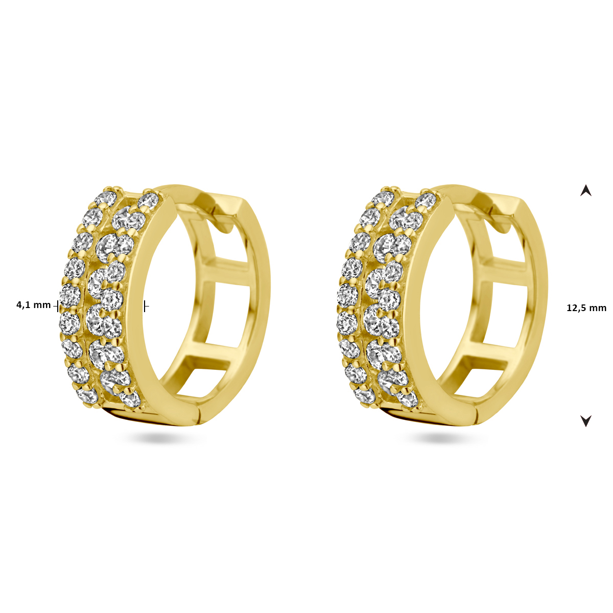 14k Geelgouden klapoorringen uitgevoerd met zirkonia. De klapoorringen hebben een afmeting van 12.5x4.1mm.