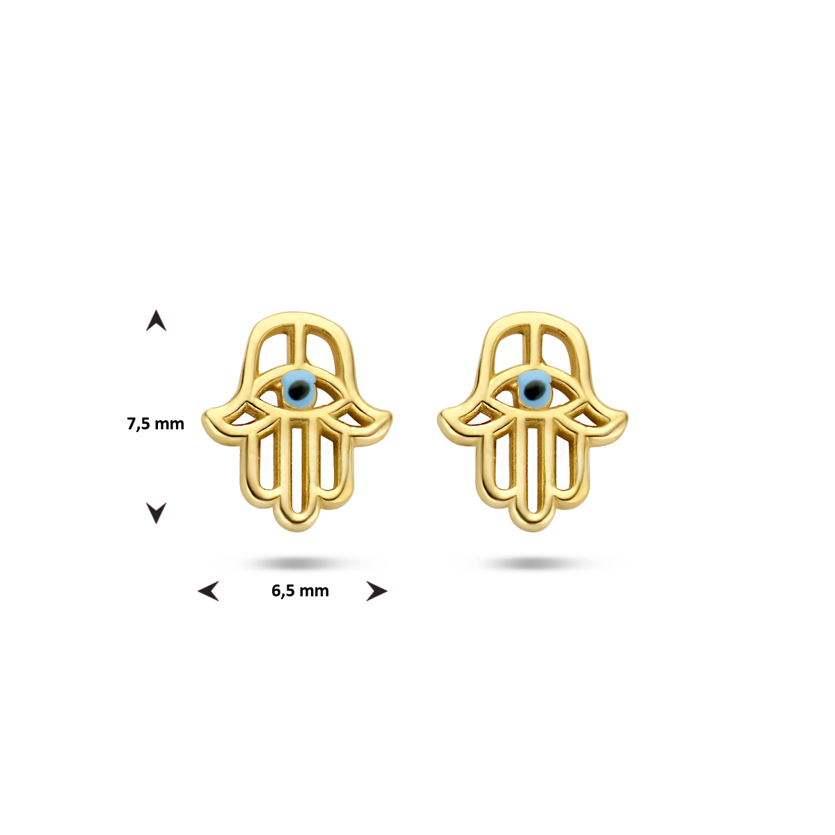 Geelgoud op 925 zilveren oorknoppen met een Hamsa handje.