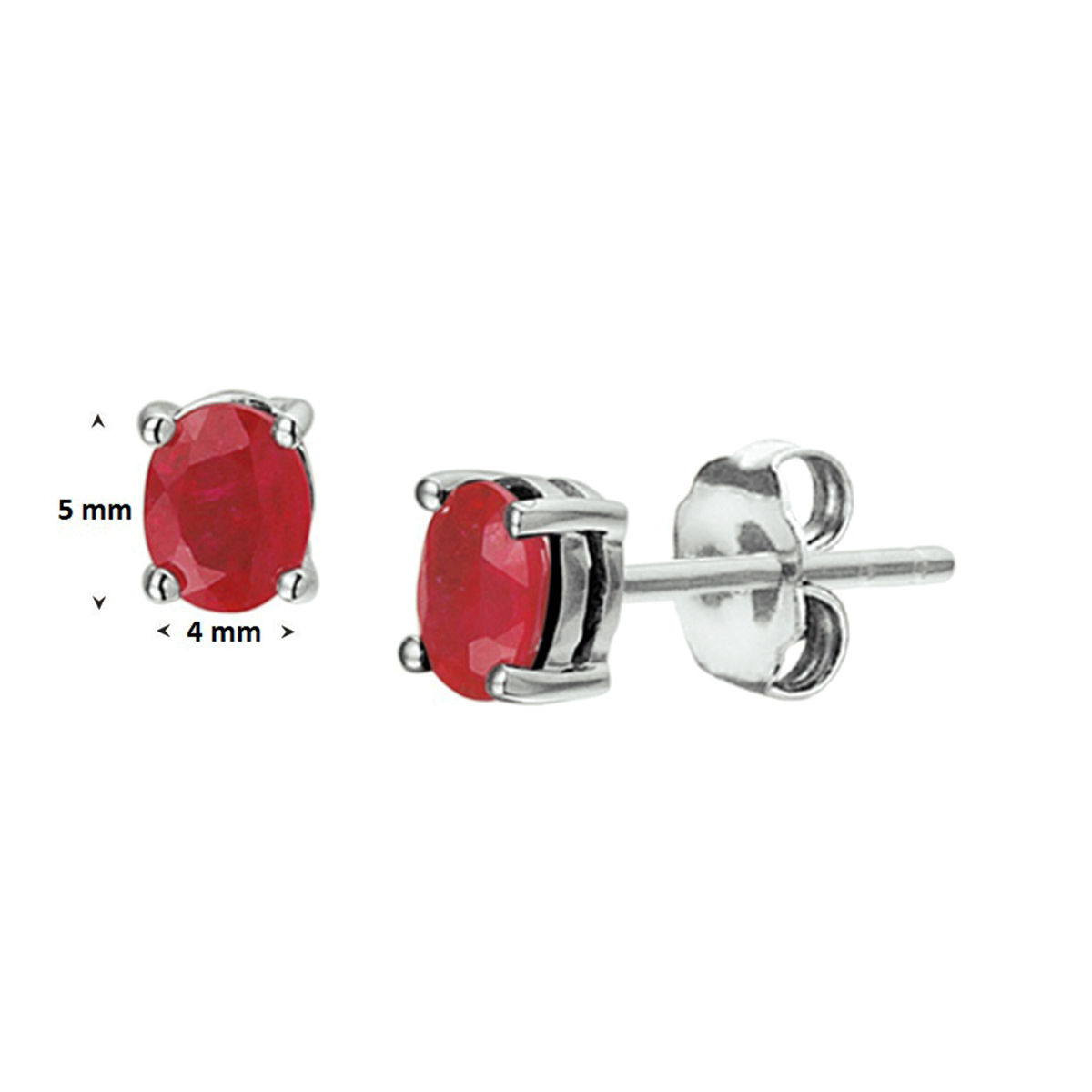 14k Witgouden oorknoppen uitgevoerd met robijn.