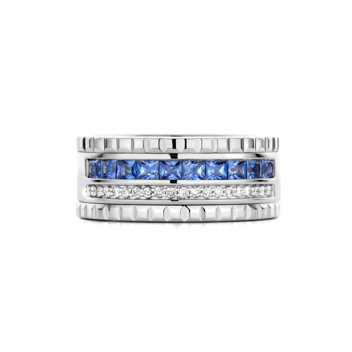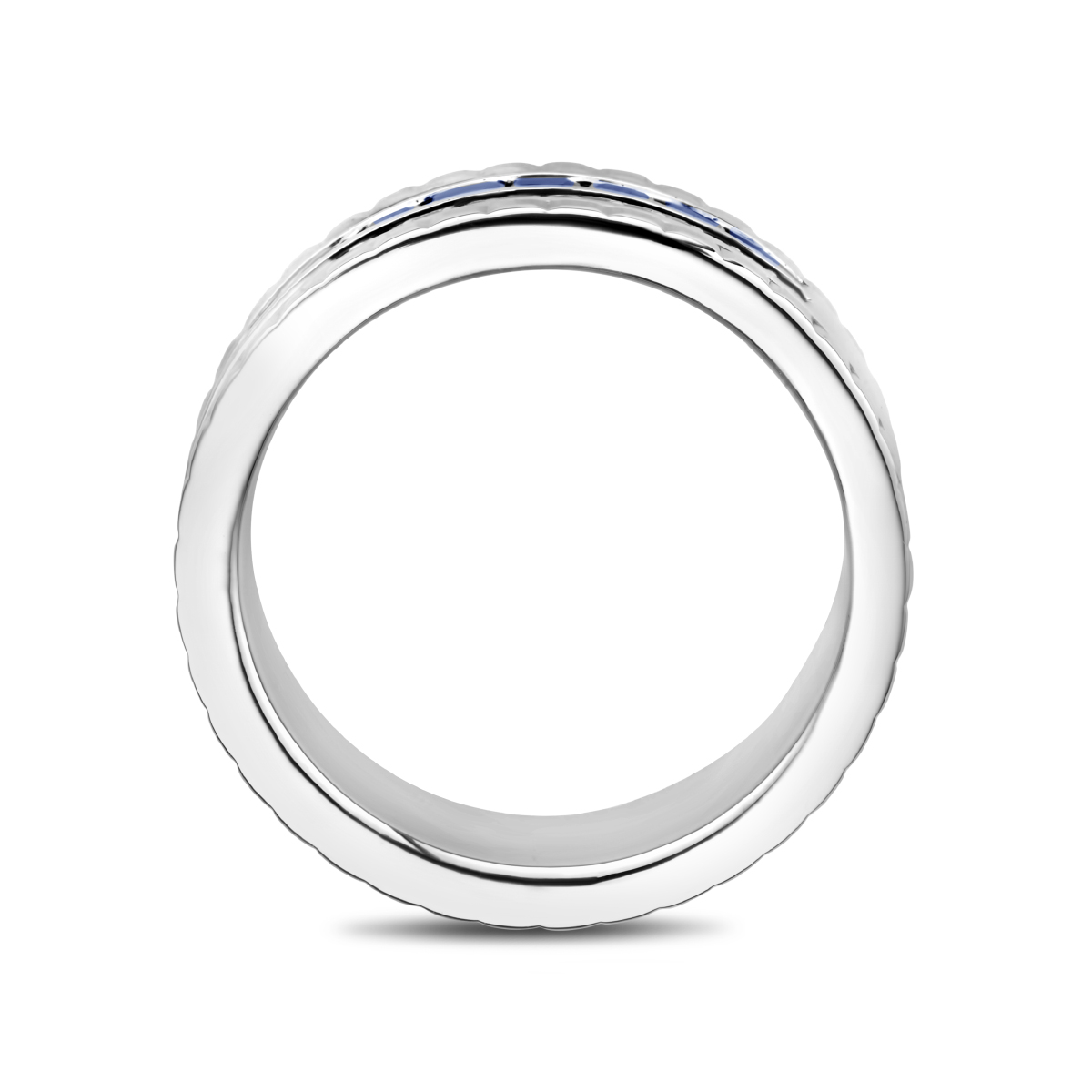 14k Witgouden ring uitgevoerd met schitterende saffier en diamant. De ring heeft een breedte van 8.5mm. De saffier heeft een steengewicht van 0.98ct en het diamantgewicht is 0.12ct.