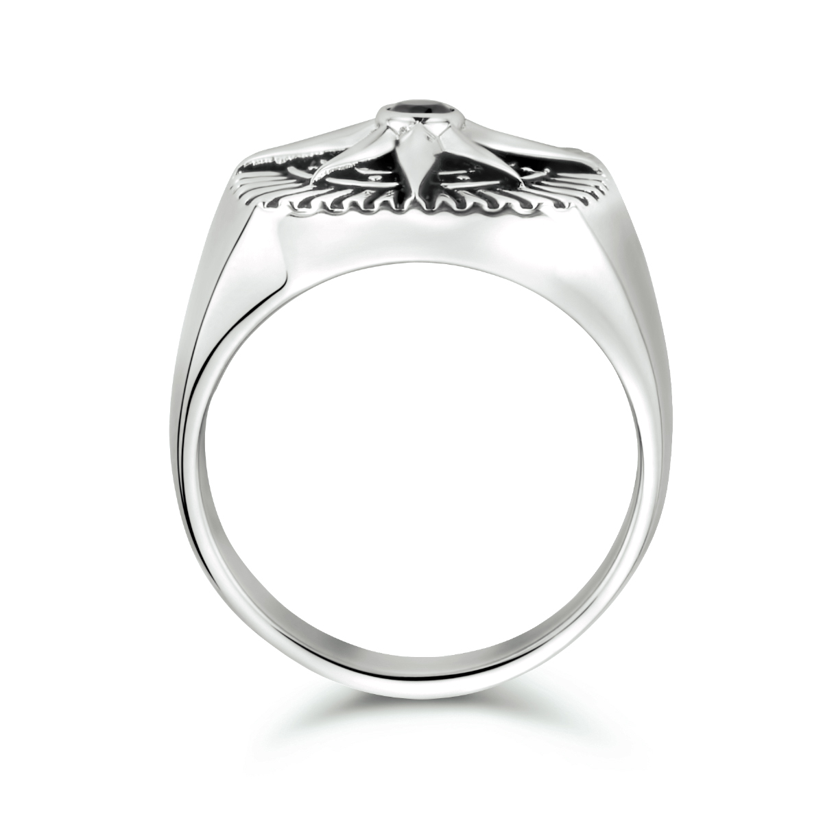 Gerhodineerd 925 zilveren zegelring uitgevoerd met een ster/kompas en een schitterende zwart zirkonia. De ring heeft een breedte van 16.5mm.